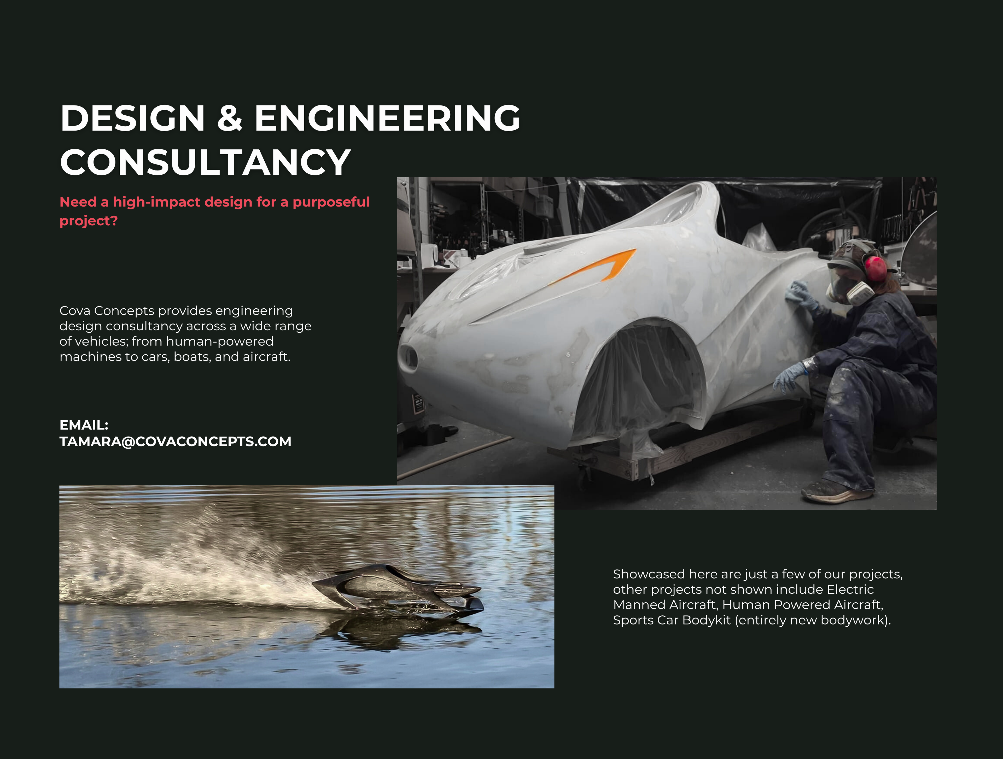 From concept design, rapid prototyping to vehicle build, if you have an exciting project, backed by a strong purpose get in touch today.
